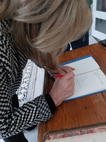 Im Atelier von Dorothee Jöllenbeck hatte ich ein Buch Runges gekauft - in Schallgeschwindigkeit hatte Jöllenbeck einen Signier-Termin bei Runge im Weißen Haus klargemacht; welch eine schöne Überraschung. So konnten wir Einblick in dessen atemberaubende Ästetik bekommen. Doris Runge hatte, obwohl einen Stock höher Besuch von ihr saß, ein paar Minuten Zeit für uns - und für Gespräche über Lyrik, die, obwohl nur kurz aber intensiv, mich sofort glücklich machten. Und sie, glaube ich, auch. Und wieder eine kleine große Kostbarkeit im Fluss des Lebens ... Vielen Dank auch noch einmal von hier an Doris Runge und Dorothea Jöllenbeck.