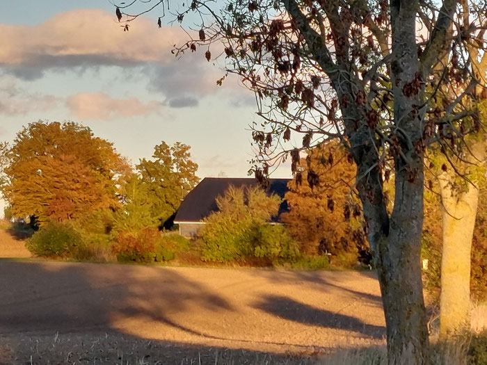 An der kleinen Steilküste in Süßau steht die Sonne schon tief. Ein paar hundert Meter weiter im Hinterland setzt sie die Wipfel der Bäume und Ackerfurchen schon in Brand und wirft lange Schatten.