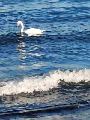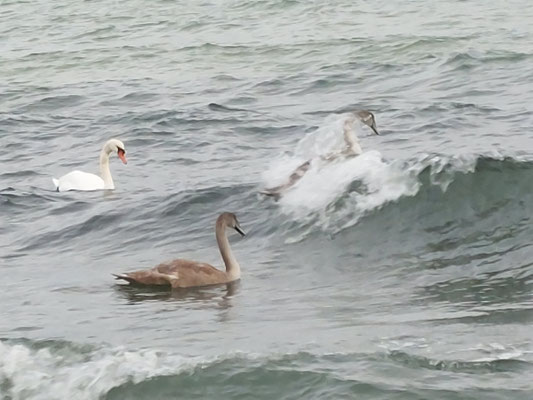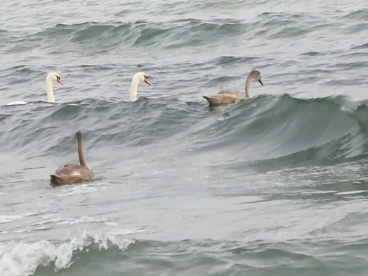 wärmt schneeweiße Rücken von Schwänen.