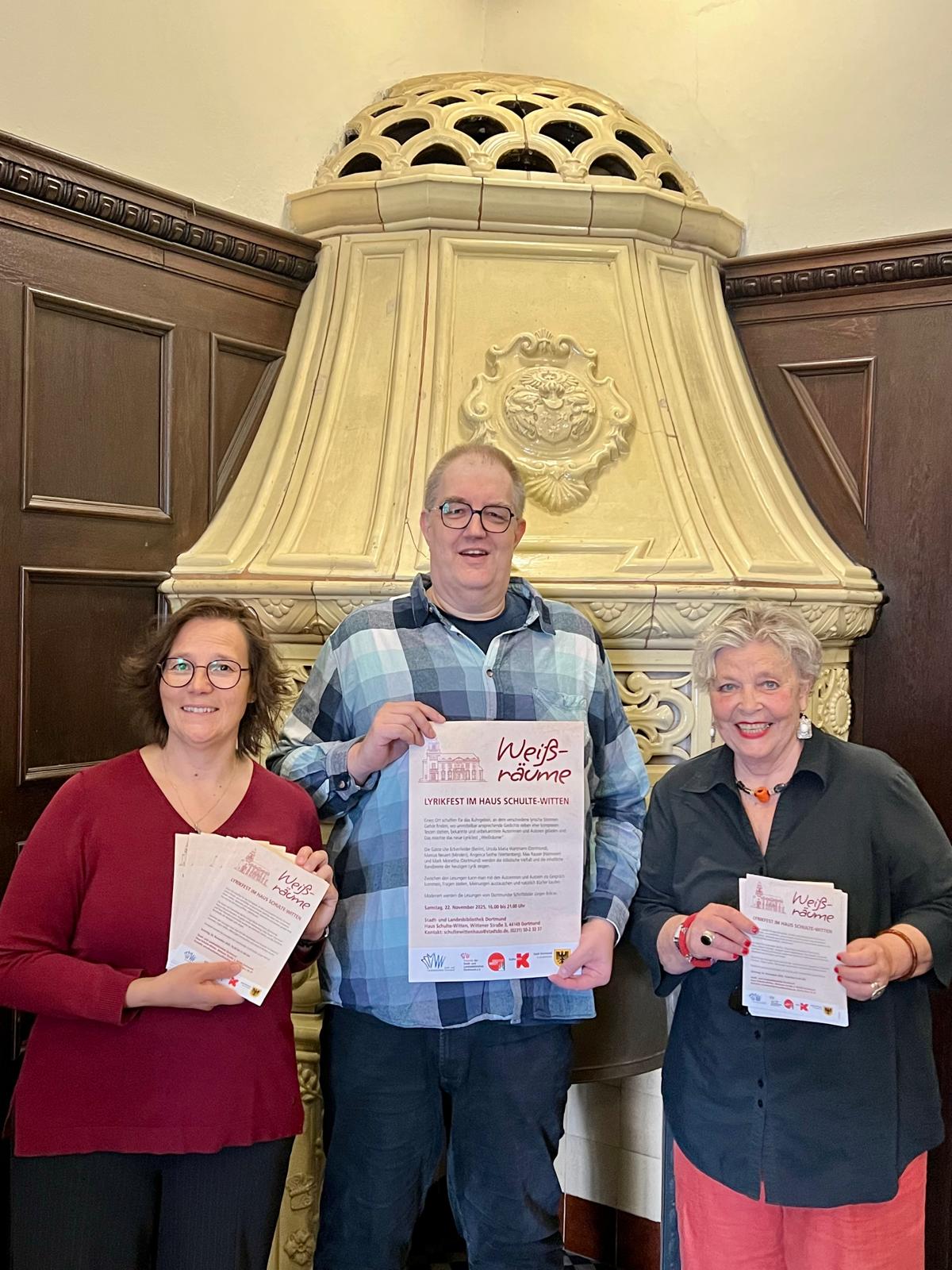 Claudia Vennes, Stadt- und Landesbibliothek und Herrin im Haus Schulte-Witten, Jürgen Brôcan, Schriftsteller, Übersetzer, Lyriker und Essyist und Ursula Maria Wartmann, Schriftstellerin und Journalistin.