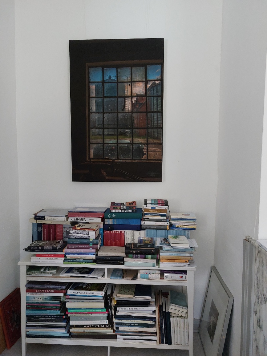 Nun hat der Linolschnitt von Steffen Büchner, der demnächst meinen neuen Lyrikband (Verlag der 9 Reiche, Berlin) zieren wird, seinen Platz an der dafür vorgesehenen Wand gefunden.